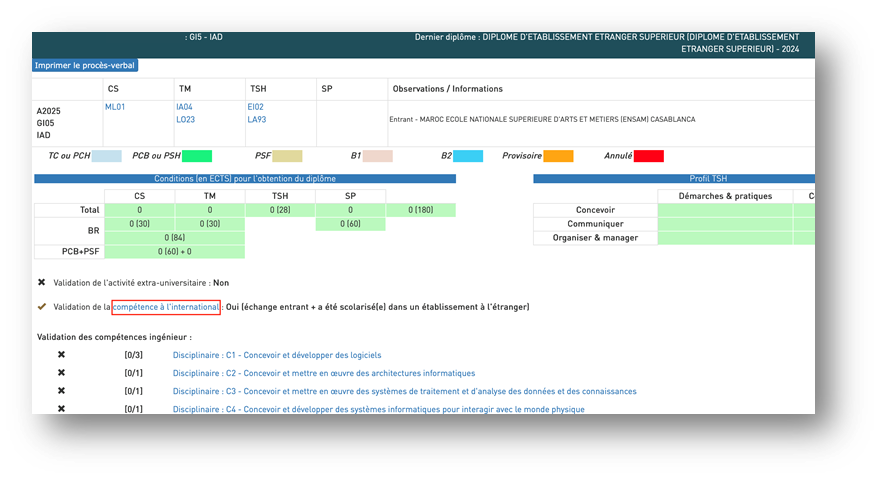 La compétence à l'international se gère séparément des autres compétences. Elle est accessible dans lENT