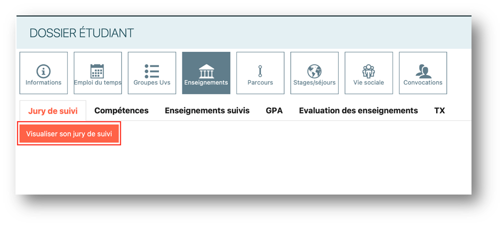 → Visualiser son jury de suivi → Compétence à l'international