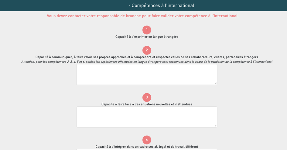 La compétence à l'international se gère séparément des autres compétences.